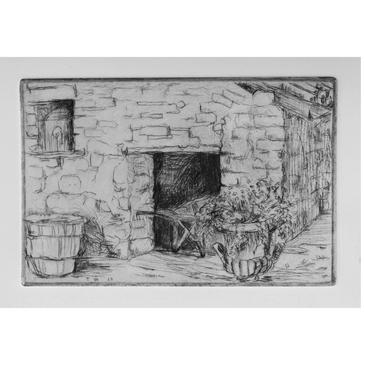 A print and the plate from which it was made. The etching is an original print (because each is inked and printed by hand, unlike a photomechanical reproduction). It has a distinctive look: a characteristic line quality; ink raised above the paper; embossing by the plate; a lesser or greater plate tone from the film of ink remaining on the copper surface.